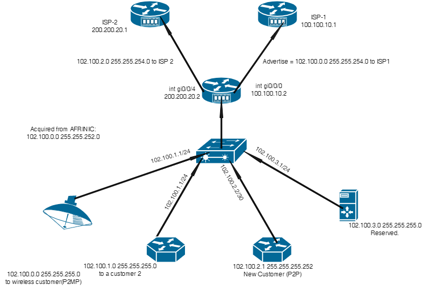 NOTE: ISP does not accept prefixes lesser /24. You can’t advertise a /30 or /29 to your ISP.